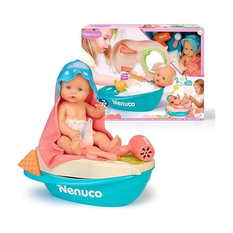 The Nenuco Feeding Time doll is perfect for little moms-to-be. This set includes a sweet Nenuco doll wearing a pink dress and everything needed for mealtime: a bottle, plate, fork, and spoon. Ideal for children aged 3 and up, this toy encourages imitation play and nurturing. With Nenuco Feeding Time, mealtime fun is guaranteed!