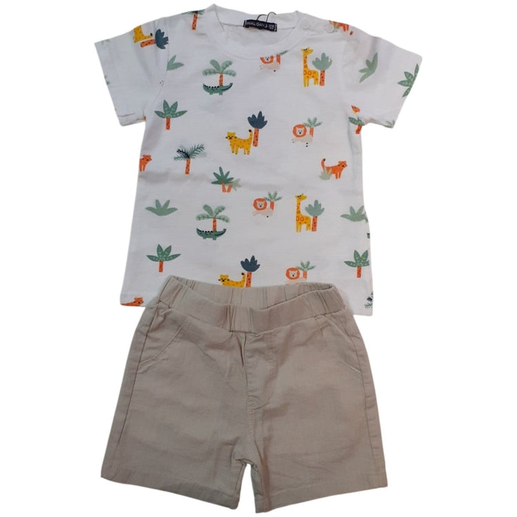 Il Small Gang Completo Bambino S-9424 è l'outfit perfetto per i piccoli alla moda. Questo set comprende una comoda t-shirt bianca e dei pantaloncini beige, ideali per creare look casual e cool. Realizzato con materiali di alta qualità, questo completo garantirà comfort e stile al tuo bambino.
