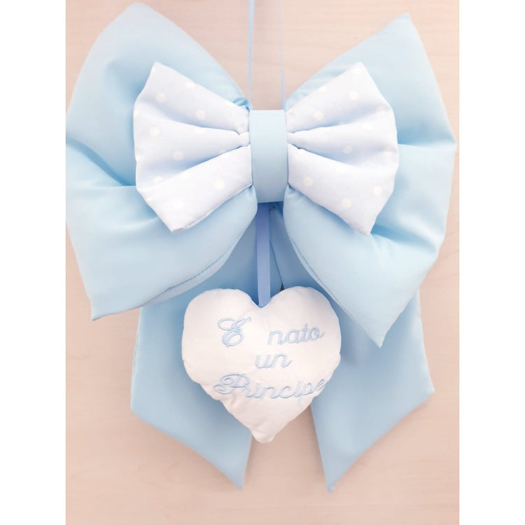 Questo elegante fiocco nascita di 25 cm è realizzato con cura e attenzione ai dettagli da Nazareno Gabrielli. Perfetto per celebrare l'arrivo di un neonato in modo raffinato e romantico.