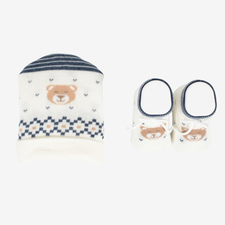Set Regalo Neonato: Cappellino + Scarpette Bianco-Blu