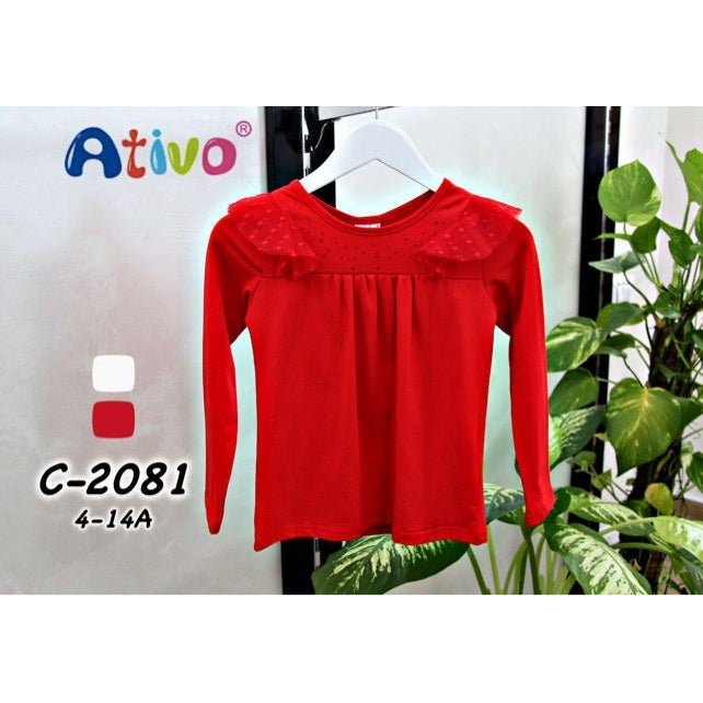 Maglietta Bambina a Maniche Lunghe Rossa Ativo C-2081