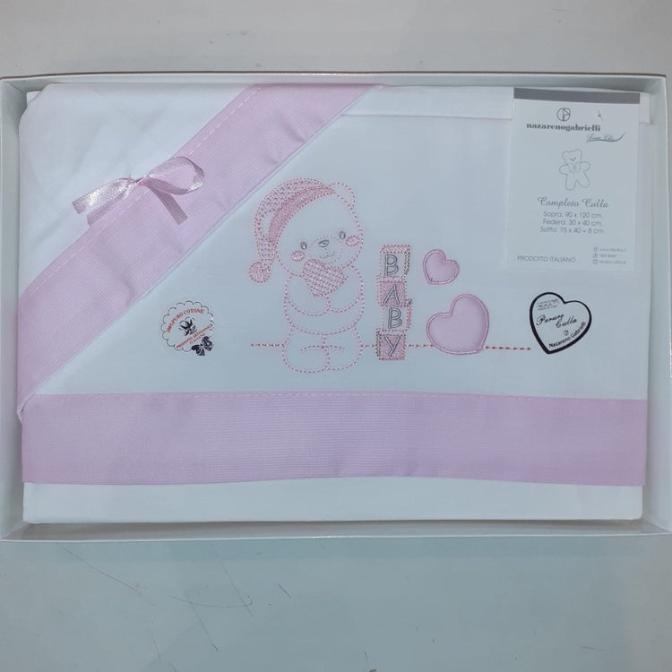 Nazareno Gabrielli Compose culla 3 pz Rosa-ricamato 100% cotone NG91P
