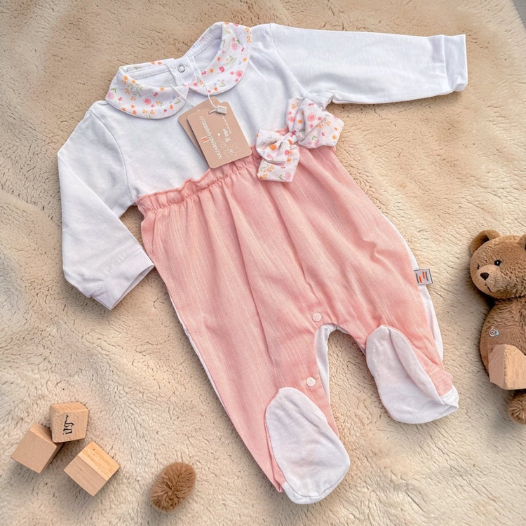 Tutina neonata femminuccia realizzata in morbido jersey di cotone, perfetta per il comfort e la delicatezza della pelle sensibile del bebè. Il capo Nazareno Gabrielli NG3530 offre praticità con chiusure facilitate e una vestibilità ergonomica che consente libertà di movimento. Ideale per le prime settimane di vita, garantisce calore e traspirabilità durante tutto il giorno. Un essenziale must-have nel guardaroba del neonato, combinando qualità artigianale e design funzionale.