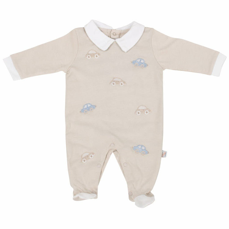 Tutina neonato maschietto realizzata in morbido jersey di cotone, perfetta per la delicatezza della pelle del tuo bambino. Caratterizzata da un elegante colletto e da un ricamo a tema macchine che aggiunge un tocco di stile e personalità. Il capo garantisce comfort e praticità grazie alla sua vestibilità morbida e ai materiali di qualità. Ideale per le giornate di primavera e estate, la tutina Nazareno Gabrielli NG3610 è un'ottima scelta per il guardaroba del neonato, combinando eleganza e funzionalità.
